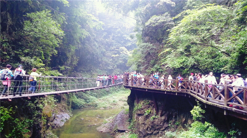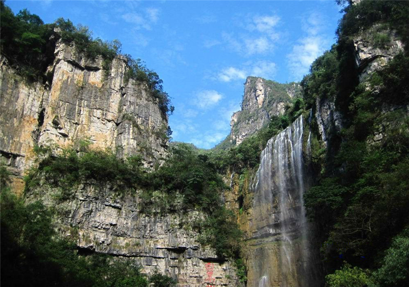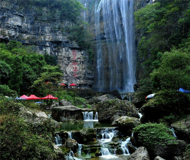 三峡大瀑布是国家AAAA级旅游景区,被誉为“中国十大名瀑”的三峡大瀑布,是展示震旦纪、奥陶纪、寒武纪等多个地质年代的天然地质博物馆,也是世界上少有的集峡谷、溶洞、山水、化石文化为一体的国家级地质公园。 三峡大瀑布溪流全长5公里,沿途分布着30多道瀑布。逆水而上,虎口瀑、一线瀑、珍珠瀑、丫瀑、连环瀑、五扇瀑等形态各异的瀑布接踵而来。这些瀑布,有的宽大舒缓,骤然跌落,“汩汩”有声;有的狭窄湍急,顺着岩壁倾泻而下;有的环环相扣,瀑瀑相连,形成了罕见的连环瀑。尤其是午后晴朗时,瀑中彩虹更是云蒸霞蔚、美不胜收。 |