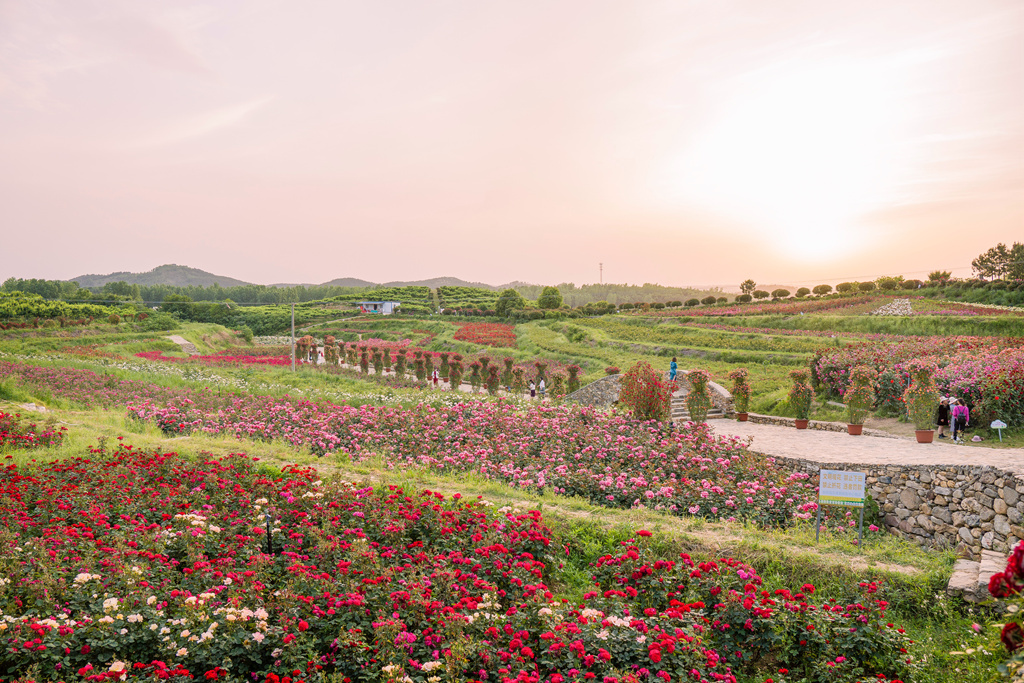近日,湖北省广水市十里街道办事处观音村上百亩月季花竞相绽放,浪漫唯美,花香四溢,吸引了许多游客前来打卡留影,欣赏美丽的乡村风光。