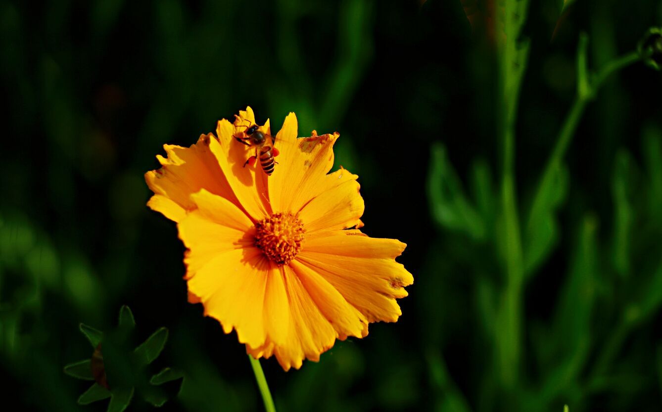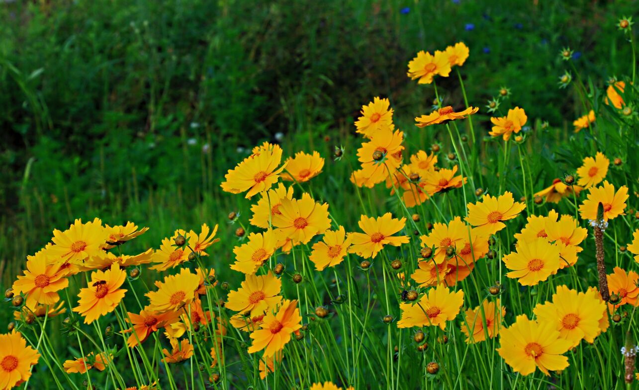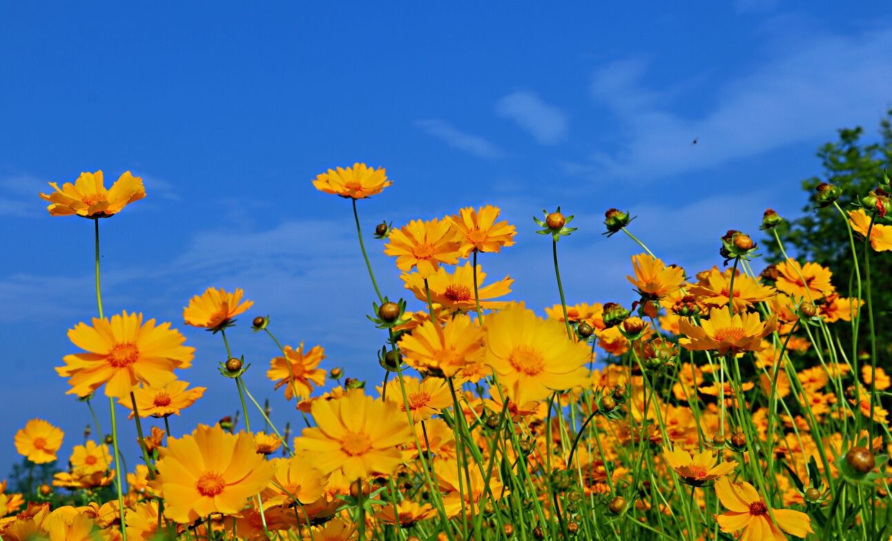 金鸡菊已繁盛鲜艳,花开如阳光般灿烂。
