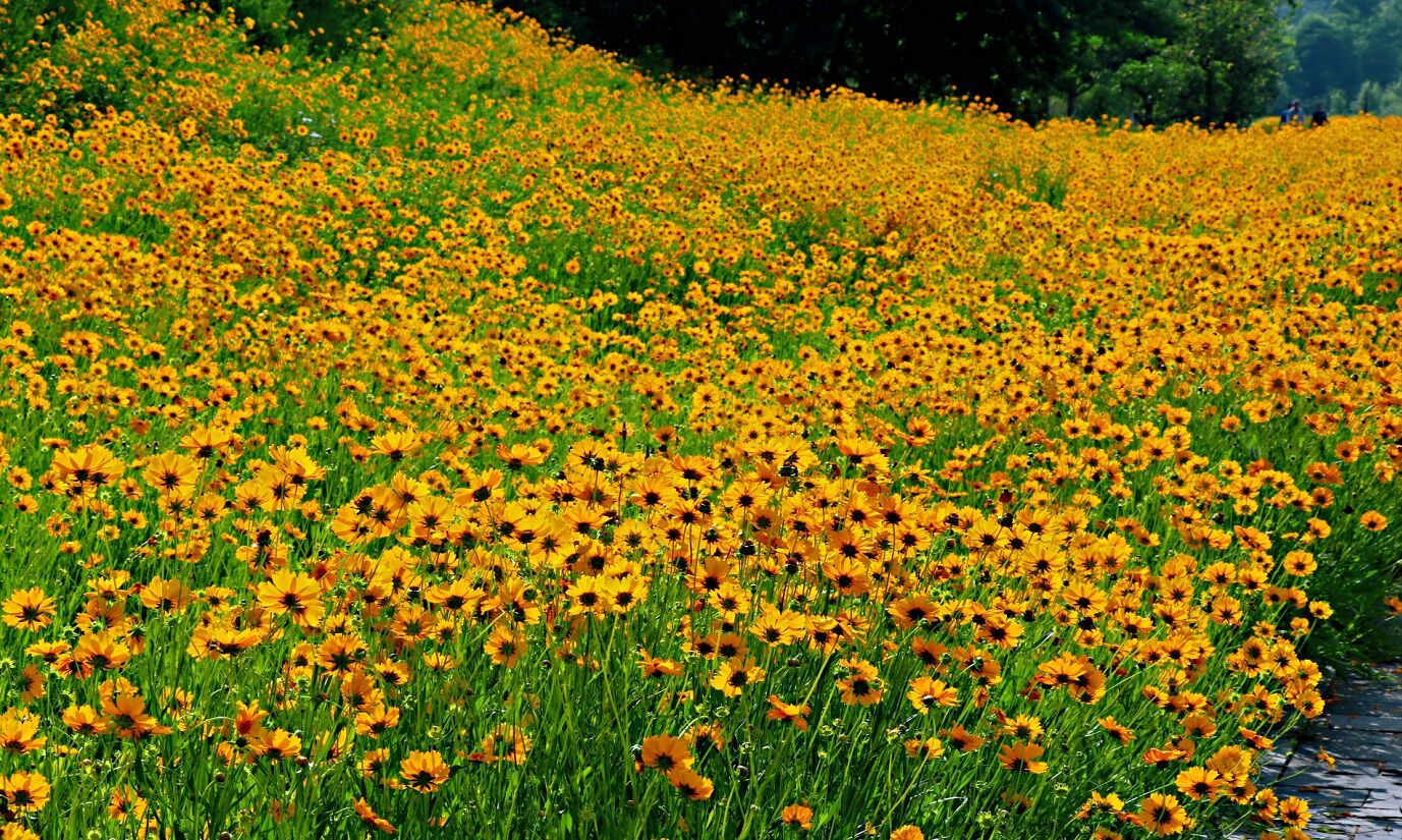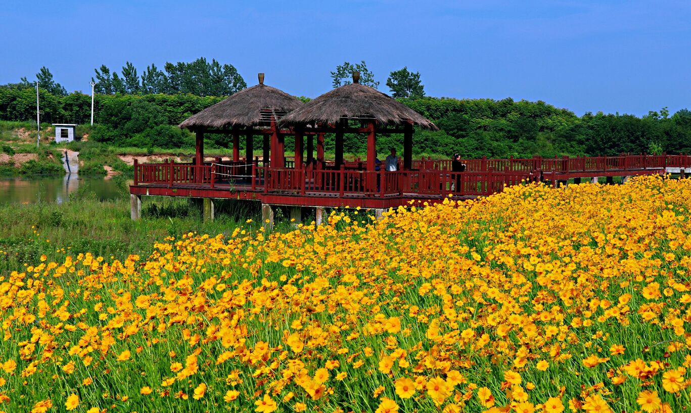 五月,湖北随州漂水河湿地公园金鸡菊已悄然盛开。微风吹来,花瓣轻轻摇摆,就像蝴蝶在抖动翅膀,翩翩起舞。置身花海,目之所及皆是耀眼的金色,如梦如幻。