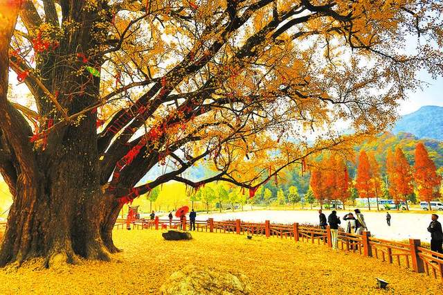 大洪山位于秦岭、大巴山、大别山之间,是湖北省唯一一座独立内山。山脉由西北到东南长约200公里,西南至东北宽约100多公里,总面积约2万平方公里,其间峰峦叠嶂,巍峨起伏。 大洪山风景名胜区跨随州、荆门(钟祥、京山)两市,1988年被国务院批准为第二批国家级重点风景名胜区,总面积305平方公里。2005年4月,随州市委、市政府成立了由市人民政府直接管辖的大洪山风景名胜区管理委员会。2010年7月,鄂旅投成立随州旅业发展公司,大力发展随州大洪山旅游业。 大洪山在随州境内127平方公里,在各地中地域面积最大,海拔1055米的大洪山主峰——宝珠峰便在这一区域内。 因其地理上的特殊优势,有史以来,大洪山成为历代兵家争战之地,发生过多少次战事数之不清。 公元一世纪初,中国历史上赤眉起义,其中的绿林军起义发源地就在大洪山区。“绿林好汉”一词正是起源于此。不仅如此,明朝明玉珍起义、清末赵邦璧起义都在大洪山立寨。 在大洪山宝珠峰、斋公岩、悬钩山3峰之间,海拔840米的地方有一个“空中悬湖”,湖面20700平方米,水深3米,终年不涸,这就是白龙池。秋天的白龙池平静如镜,映照蓝天白云和绿树红叶。 在白龙池西500米山最高处,有一座状元塔。据传北宋年间,郑獬少时苦读于大洪山白龙池,考中头名进士,官居开封府尹。后金兵侵犯中原,他带兵抵抗,由于朝中腐败,粮饷不足,退兵到大洪山。在此留下一本书,名《溪集》。后人为其修建状元塔。 大洪山动植物资源丰富,堪称一座天然的动植物宝库,森林覆盖率达90%。可谓“一山分四季,十里不同温”,气候温和,冬暖夏凉。 在随州大洪山风景名胜区主峰脚下,至今屹立着一棵近3000年树龄的古银杏树。古银杏树高38米,直径2.61米,树冠荫笼面积400多平方米,树围8.2米,根深须广,枝繁叶茂。春夏时节,古树绿荫葱茏;金秋时节,叶片金黄,与四周层林尽染的远山近峦相互辉映。据称,该树是中国目前仅存的4株树龄最长的树之一,被誉为“华中银杏第一树”。 如今这棵树依然生机盎然,几千年来,见证着大洪山千百年来的发展历程。