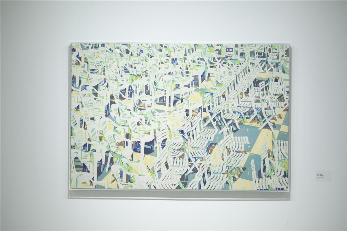 展览开幕式现场 不难发现,他们的作品,从题材上来讲,更多的是生活的艺术切片,是现实的肌理静观。它们提醒生活,让日常中看似微茫的震颤成为回音起点。从艺术本体上来讲,他们都经受了传统学院的教育和训练,但这几个艺术家绝不只是停留在技法、形式上的“陈陈相因”,而是不断探索和实验这门相对小众的画种在当下的创新,从题材、材料、语言,再到画面的内涵、观念等多个维度,一点一点地不断打破原来的边界。 (图片由近觉空间提供) |