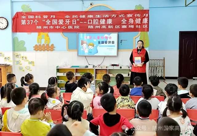 本网讯(通讯员郭海洲、钱洪萍)在第37个“全国爱牙日”来临之际,随州高新区寨塆社区联合市中心医院走进城东幼儿园,开展“口腔健康 全身健康”主题活动。活动通过护牙宣教、涂氟防龋、模拟刷牙等多种形式,为200余名幼儿科普护牙知识,助力他们养成健康的口腔习惯。