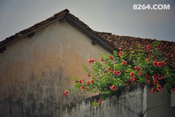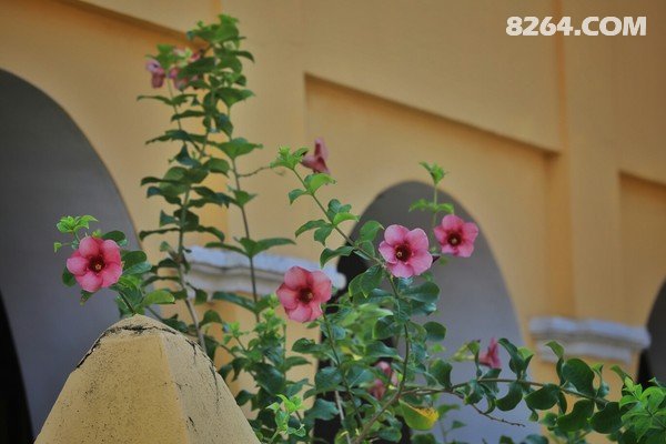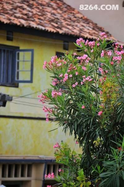 许多居民在门前种了花,是的街道更显得优雅,这家的墙头上,鲜花和绿色叶子爬过墙头,让活力散发在黄色的墙面上。