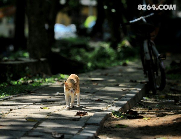 古城内的人并不多,路上只有三三两两的游客,很少见到本地居民,更是没有大都市那些车辆,显得十分幽静。在林荫路上,一只小猫懒洋洋地晒着太阳,时光彷佛停滞在那一瞬间。