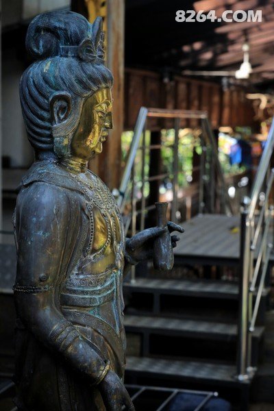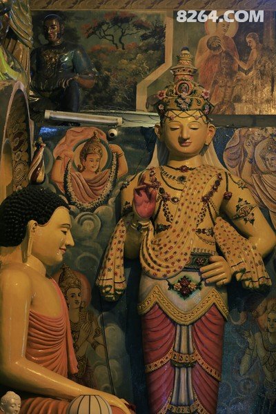 寺庙内部空间并不大,几间屋子相连在一起,满满的陈列了各色各样的珍藏,大大小小的佛像都有几百上千个,各具特色的佛像表情,姿势千奇百怪,让人忍心不住好奇这里面的故事,小小的“博物馆”显得格外拥挤,珍贵的佛像、雕塑及手工艺品好像随性的堆放在一起。