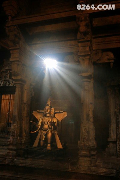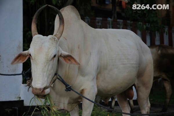 Sri Ponnambalam Vanesar Kovil门口有一头白牛。