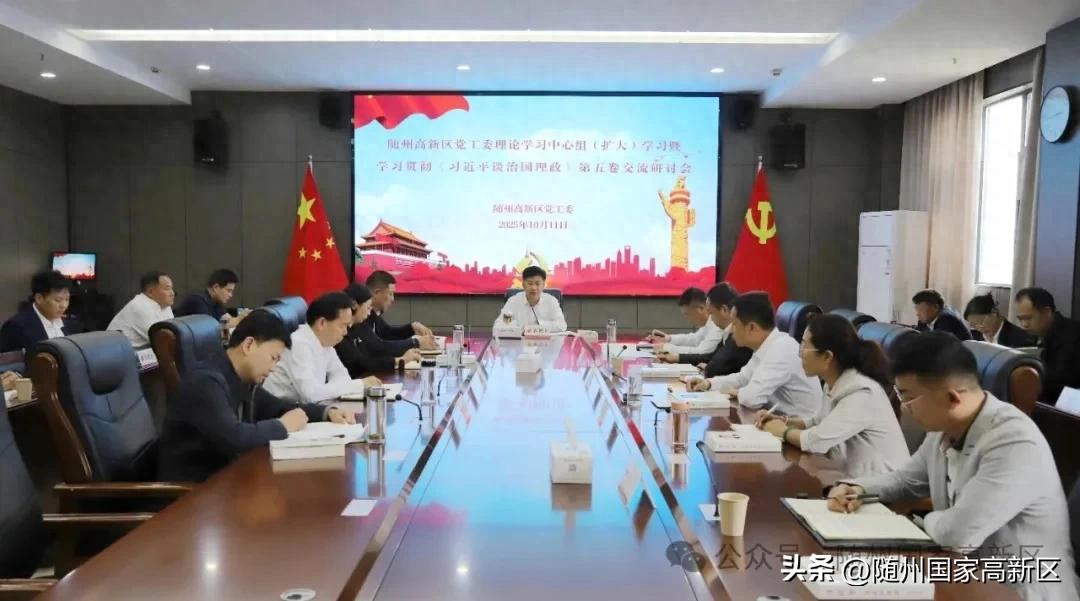 本网讯(通讯员潘开亮)10月11日,随州高新区党工委理论学习中心组围绕《习近平谈治国理政》第五卷开展集体(扩大)学习。市人大常委会副主任、随州高新区党工委书记、管委会主任郭晓东主持会议并讲话。他强调,要切实把习近平总书记治国理政的战略意图、深邃考量和各项重要要求不折不扣贯彻落实到工作中,不断推动全区经济社会各项事业高质量发展,为建功支点建设、加快打造全市经济高质量发展“主引擎”奠定坚实的思想理论基础。