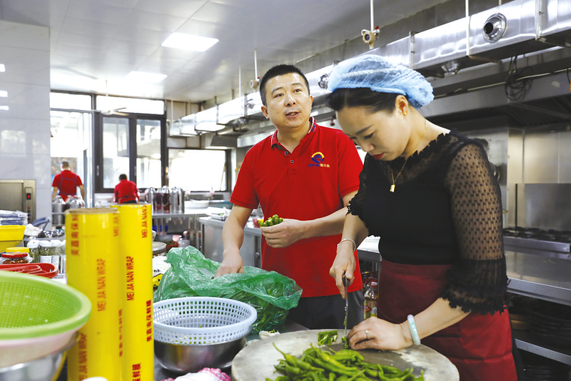 回乡创业的“80后”黄欢和妻子在长岭镇开了一家餐馆 拍摄 / 徐斌
