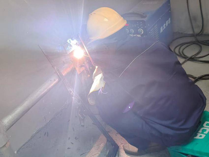 培训现场,气氛热烈,秩序井然。实操区焊花飞溅、弧光闪烁,学员们佩戴防护装备,分组轮训,反复练习运条、收弧、接头等关键动作。冉作义巡回指导,手把手纠正操作偏差,强调“每一个焊点都关乎安全与质量”。不少职工利用午休时间加练,老中青三代焊工围坐交流,分享心得,形成“比学赶帮超”的浓厚氛围。