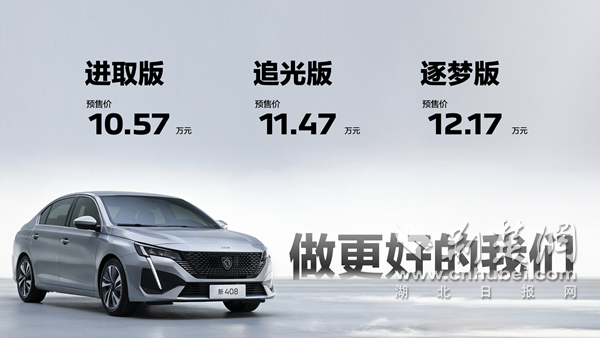 荆楚网(湖北日报网)讯 (记者王博 通讯员 张亚男)7月27日,万众期待的东风标致新408正式开启预售,共推出4种车身颜色(珠光白、星夜蓝、碳晶黑、银翼灰)的3款车型,预售价分别为进取版(10.57万元)、追光版(11.47万元)和逐梦版(12.17万元)。
