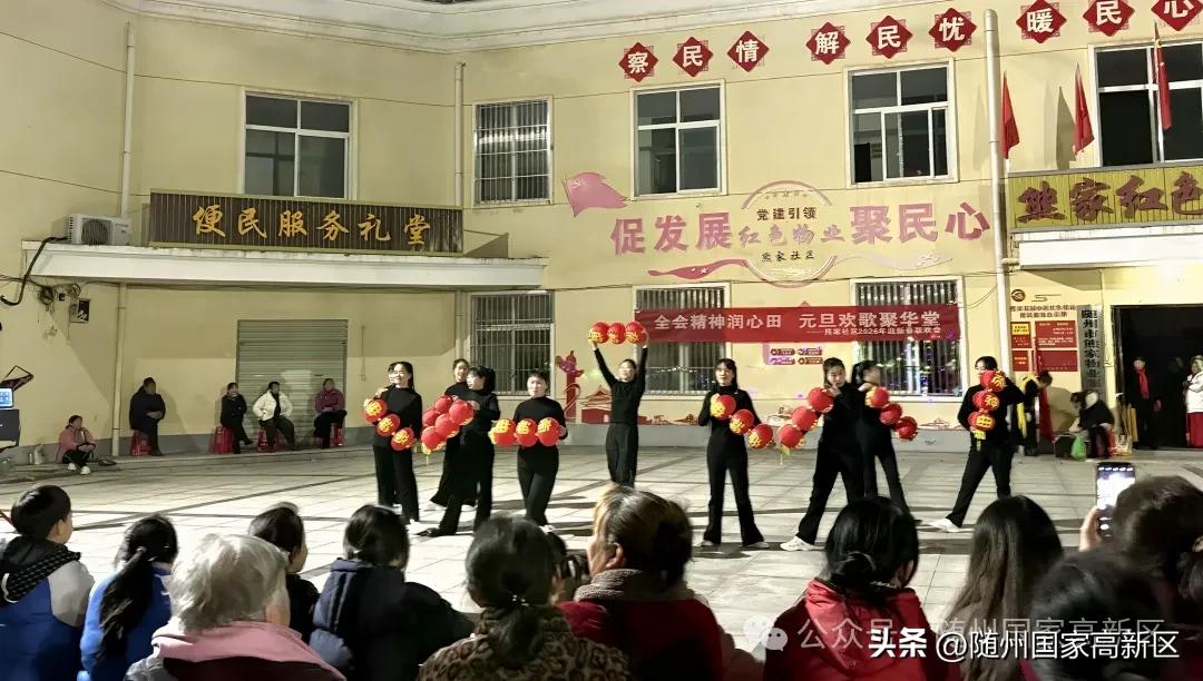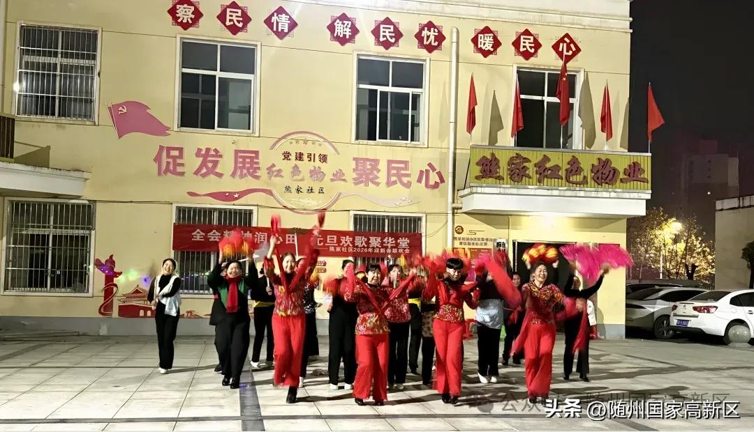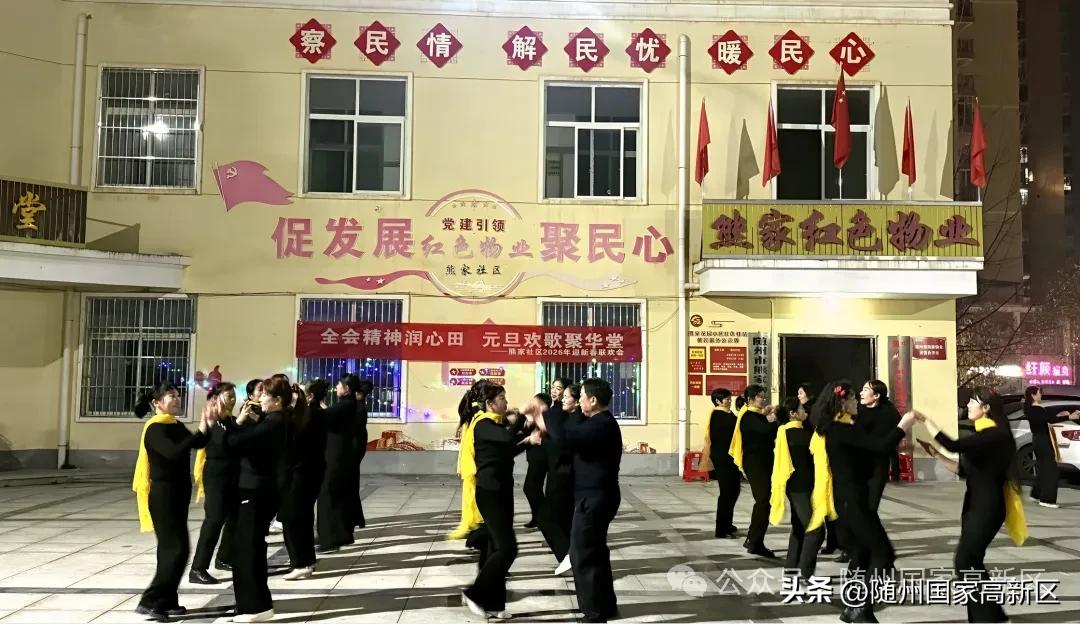 本网讯(通讯员郭海洲、隗璐)辞旧迎新启新程,文化惠民暖人心。为深入学习贯彻党的二十届四中全会精神,落实“坚持文化惠民,实施公共文化服务提质增效行动”部署要求,在2026年元旦佳节来临之际,随州高新区熊家社区精心策划组织的“全会精神润心田 元旦欢歌聚华堂”主题文艺晚会在熊家花园二期红色物业广场温情上演。